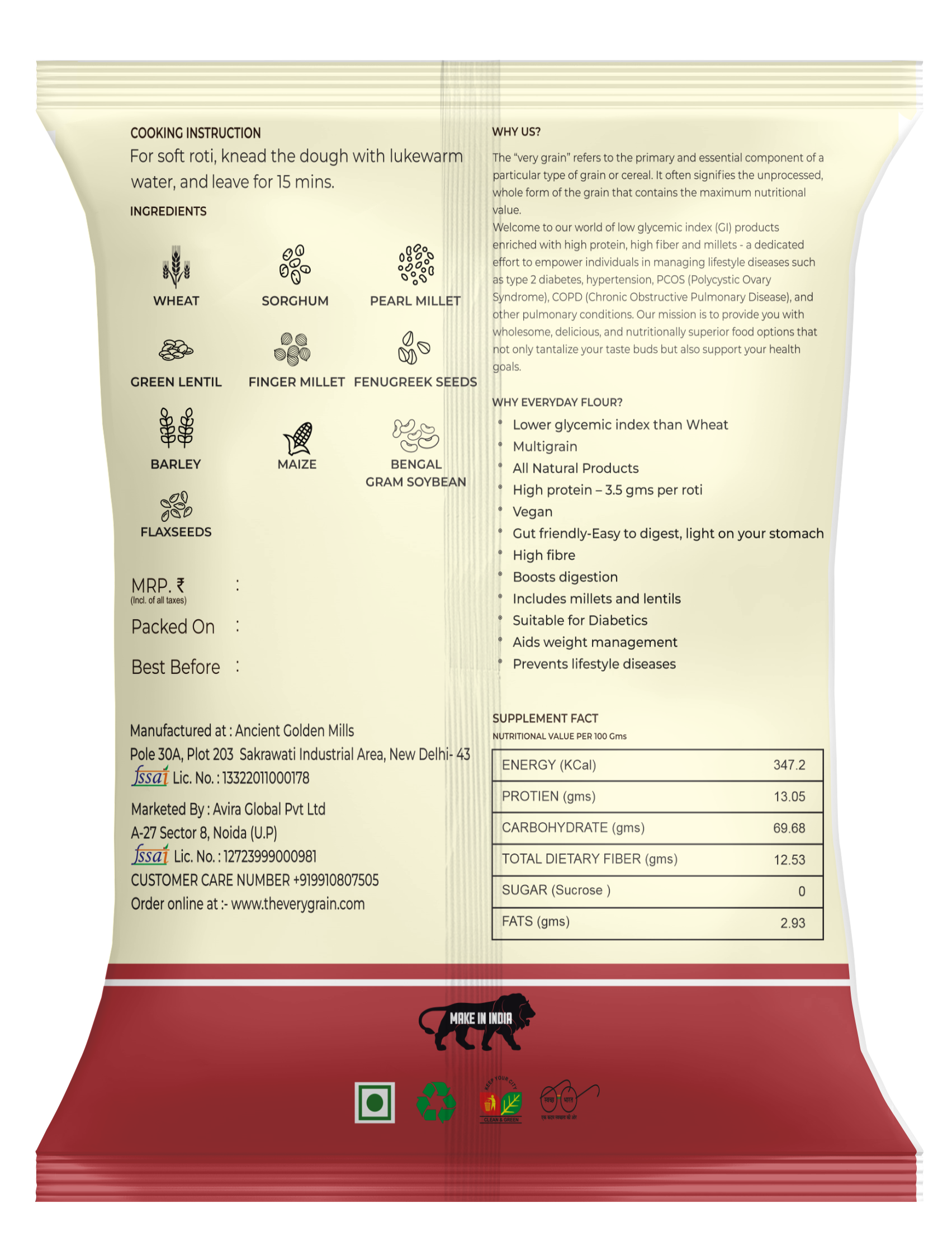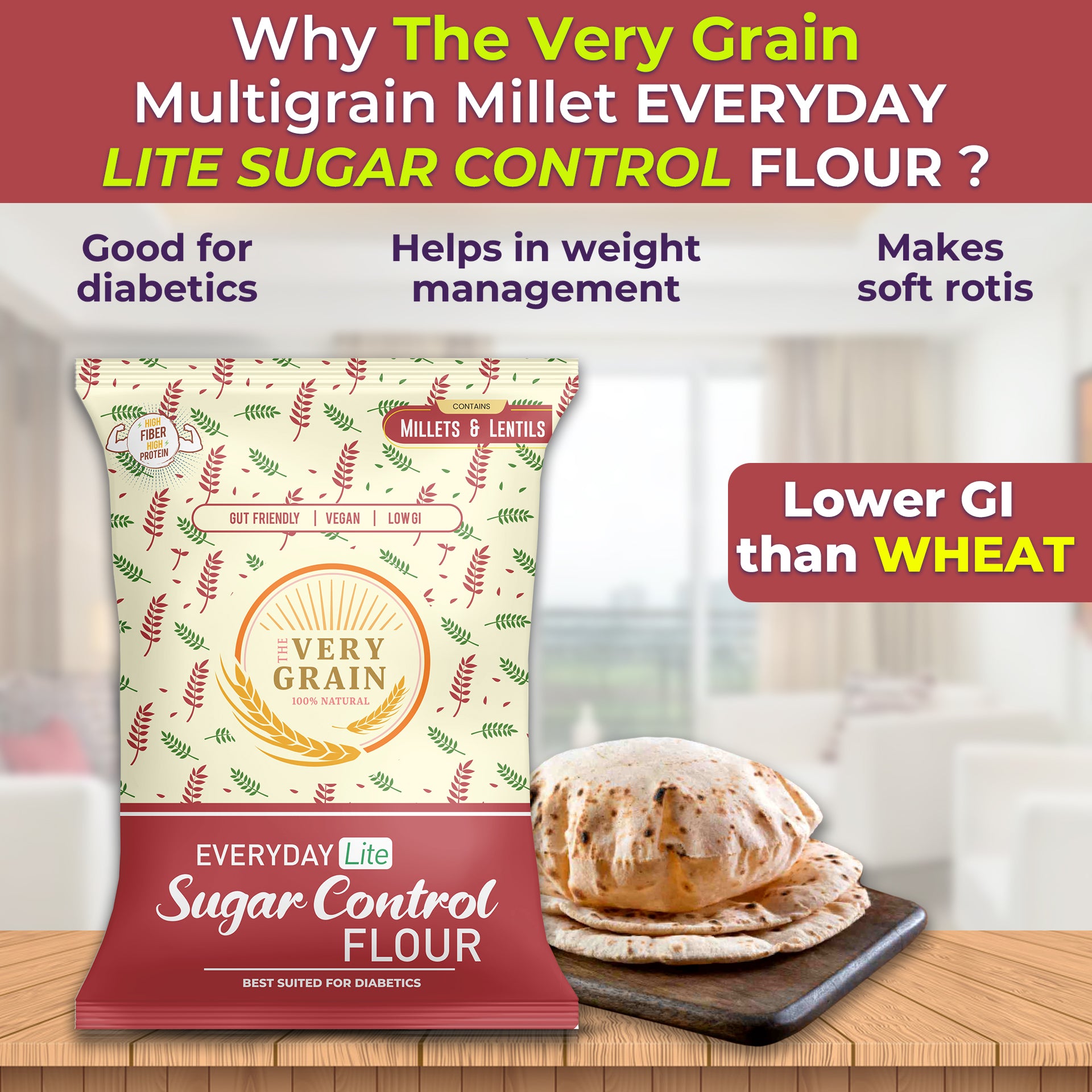 Everyday Lite Sugar Control Flour (25% Lower GI than wheat, High Protein, Diabetic Friendly, Multigrain MultiMillet) - (2+2) Kgs + 500 Gms Free